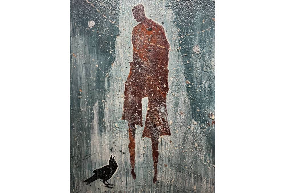 An Indigenous artist (Upper Mohawk) from Port Dover, Ontario, Michael shares this note about the series: “These works are an extension of the messengers piece where birds and ravens represent prophecy and insight. I’m playing with layered timelines and visions that blur dream and reality, past and present. The victims of the residential school system continue to be an inspiration in my work. It somehow helps me on my personal path of healing.”