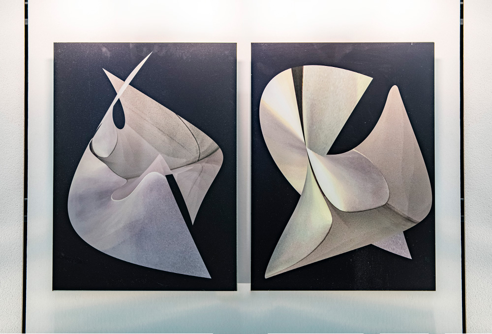 Claudette’s paintings are rooted in the physical world but are altered through the process of layering until forms emerge from the boundary where light meets the dark, indicative of an underlying energy. These paintings border on abstraction of form, creating a dreamscape quality that could change at any given moment.