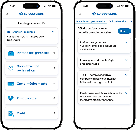 - Vérifiez facilement les détails de votre régime, votre utilisation et vos plafonds de garantie – vous saurez ainsi exactement ce qui est couvert.